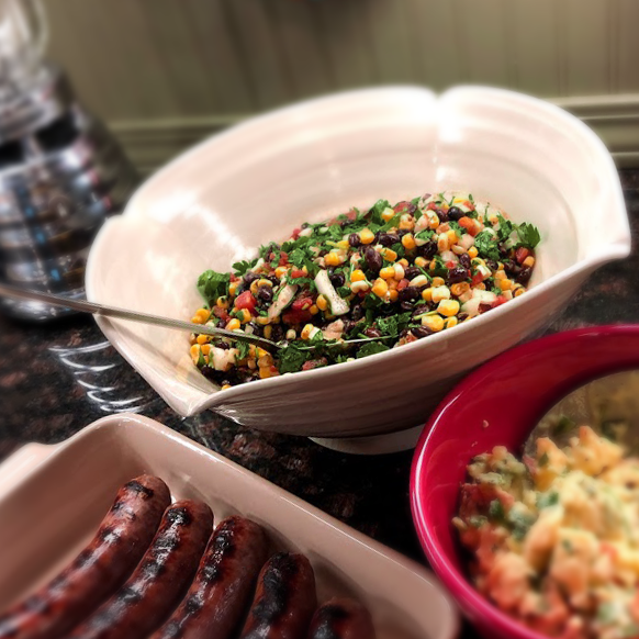 - Mix equal parts sweet corn, chopped Vidalia onions, petite diced tomatoes, black beans and chopped flat-leaf parsley in a big bowl.